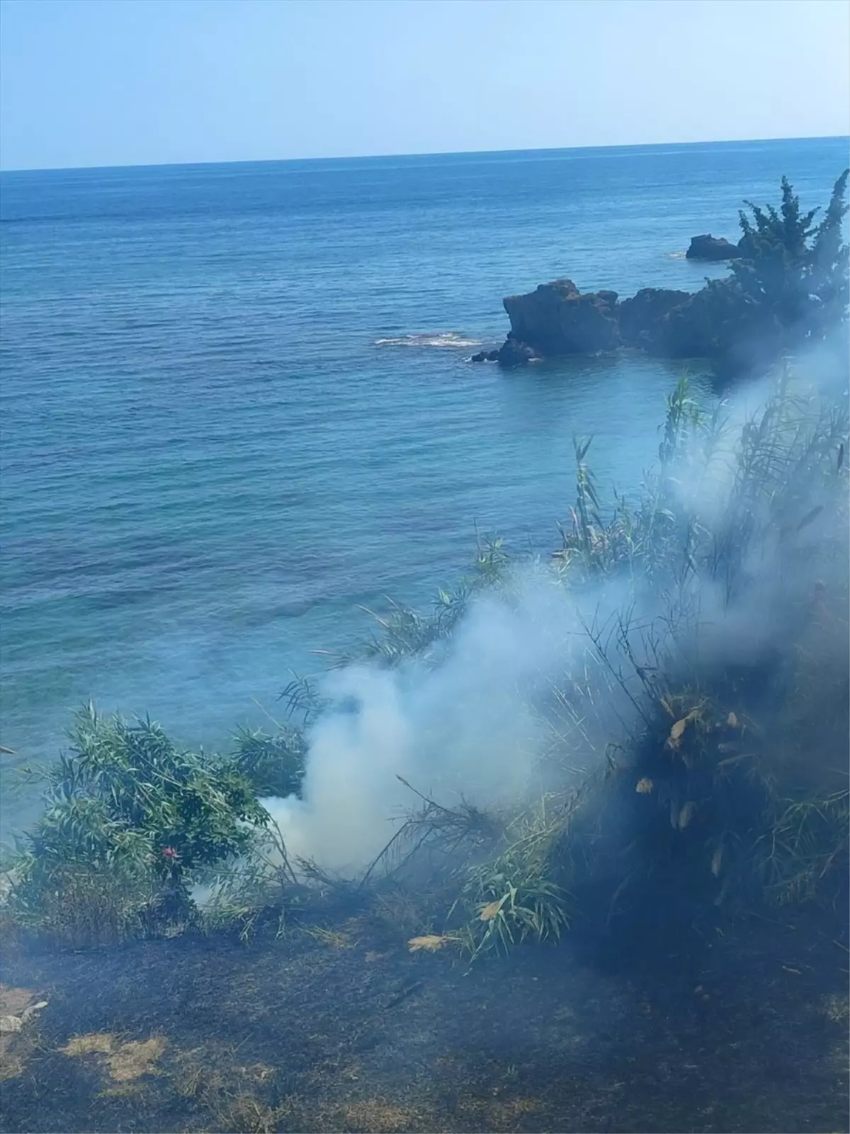 Okurcalar Mahallesi’ndeki otellere yakın bir bölgedeki çalılık alanda yangın çıktı.
