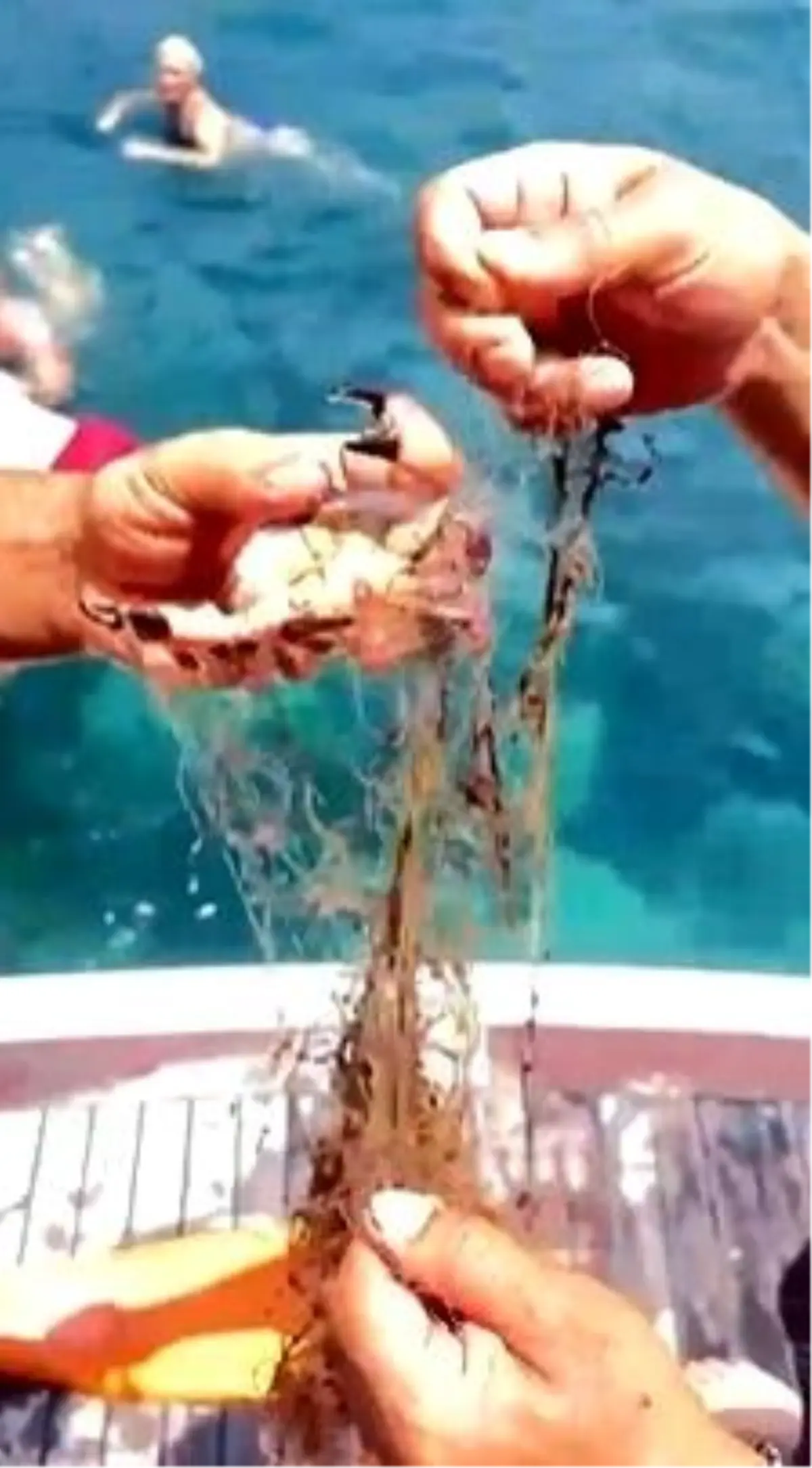 Antalya’nın Alanya ilçesi açıklarında denize bırakılan hayalet ağa takılan üç yengeç, hassas vatandaşlar tarafından kurtarıldı.