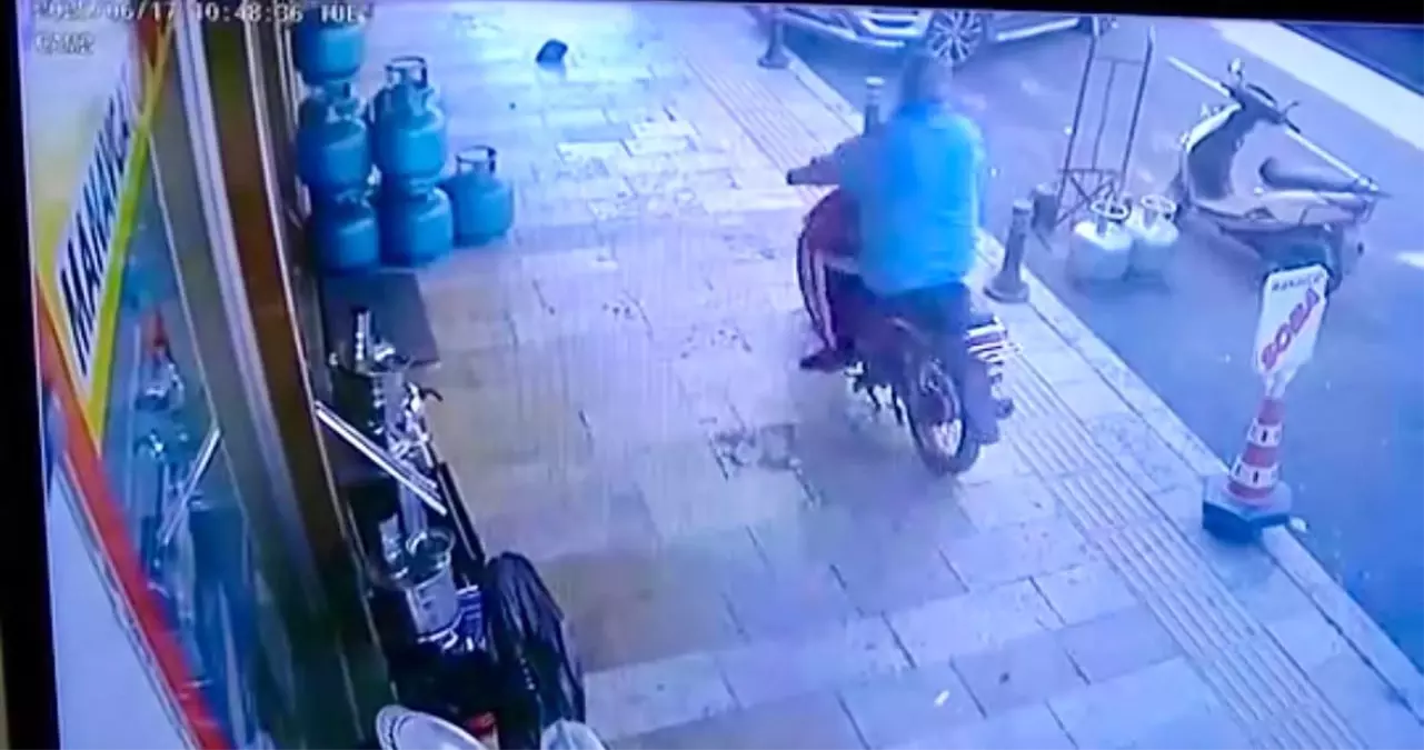 Antalya’nın Manavgat ilçesinde motosikletli 1 kişi, tüpçü dükkanının önünde bulunan tüpü alarak gitti. O anlar güvenlik kamerasına yansırken iş yeri sahibi şikayetçi oldu.