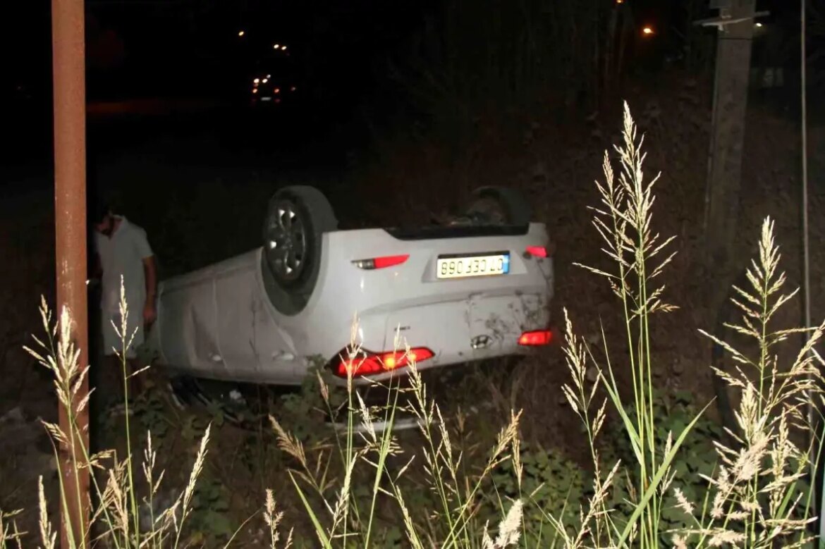 Antalya’nın Serik ilçesinde takla atan arabada bulunan şoför ve yolcu, kazadan talih yapıtı yara almadan kurtuldu.