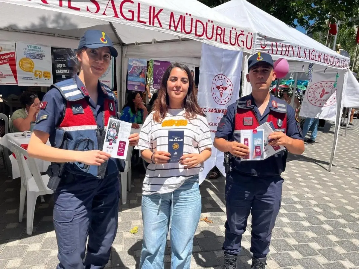 Aydın’ın Kuşadası ilçesinde stant açan jandarma grupları hem teşkilatı tanıttı hem de bayan ziyaretçilere KADES uygulamasını anlattı.
